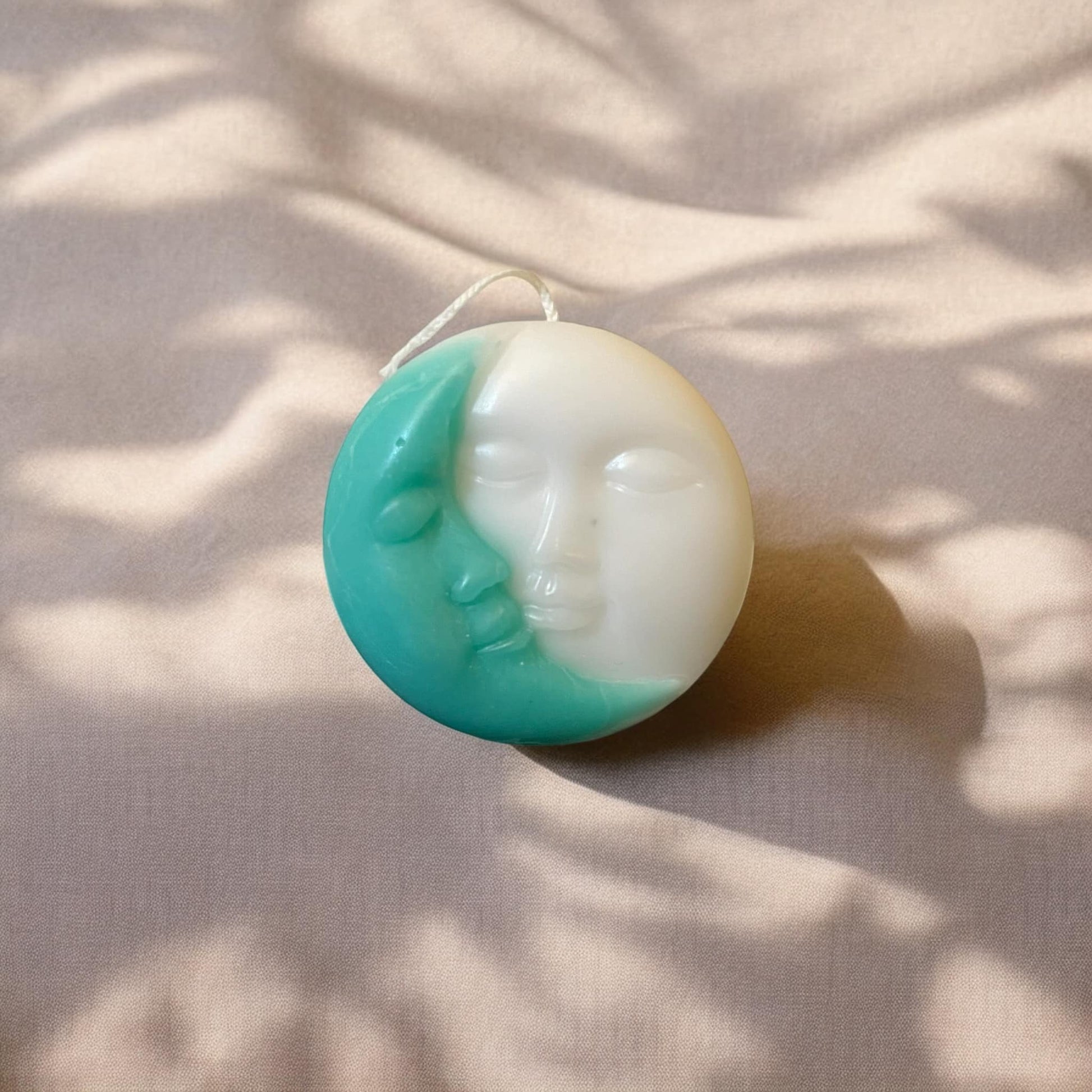 Detta runda ljus med motiv av både sol och måne skapar en harmonisk och mysig atmosfär. Gjort av 100% svenskt stearin, vilket gör det till ett hållbart val för alla tillfällen. Perfekt för att ge hemmet en lugn känsla och passar lika bra som dekoration vid speciella tillfällen eller till vardags.